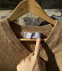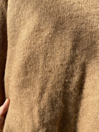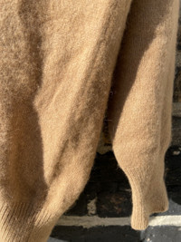 Featured in camel. Earlier Comme des Garçons Homme sweater made entirely of a soft nap wool. Ribbed collar, cuffs, and waist, with a tightened waist hem to fit snugly against the body. Relaxed, soft wool that adjusts to body shape. No tagged size. Fits approximately like a medium. Measurements available upon request. Feel free to message me with any questions, concerns, or offers. Complimentary shipping to the Continental U.S International buyers please contact for a quote.