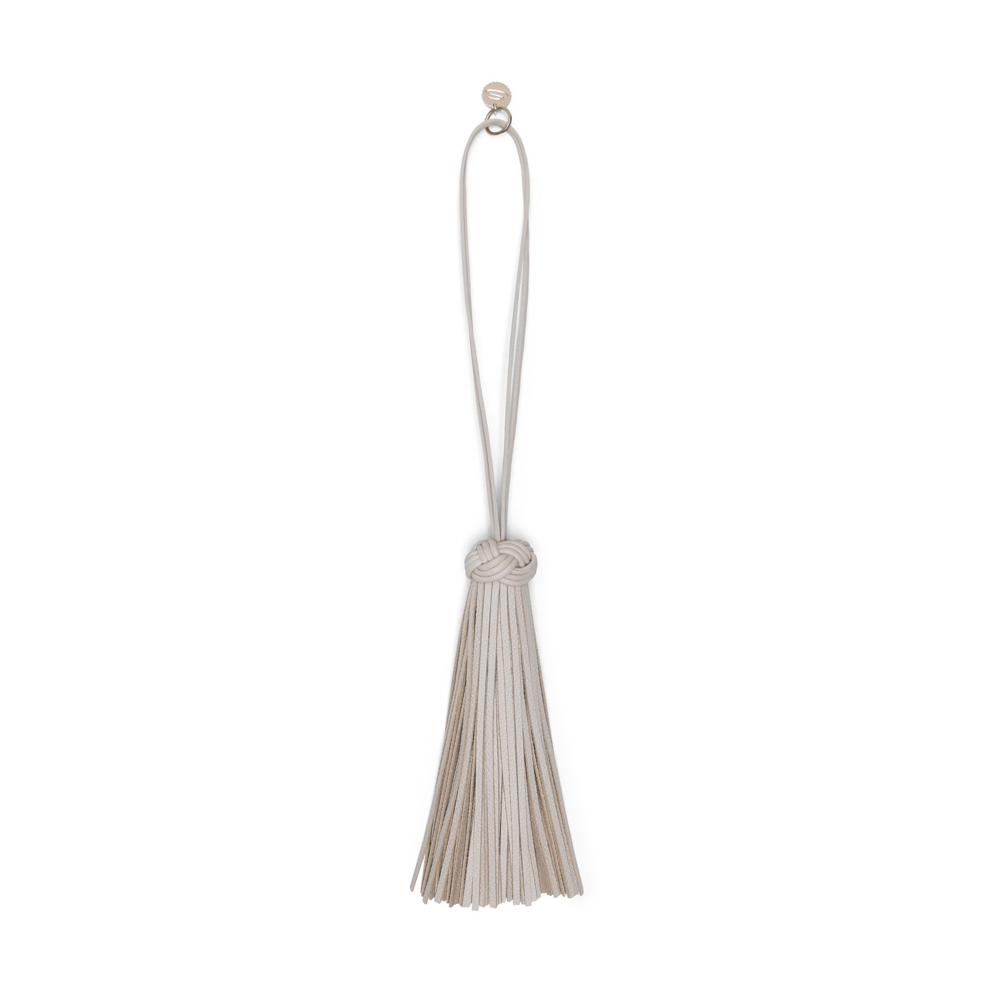 This tassel charm is a charming tribute to the quintessential loafer detail and the vision of elegance that continues to inspire Santoni's creations. Crafted by hand from the finest leather, it can be used as a keyring or simply to accessorise your favourite handbag. Product details Product ID: DFPPA2825FOHHPAE11 - Crafted from leather - Color: beige - Tassel - Adjustable strap - Dimensions: 17cm x 27cm x 3cm - Made in Le Marche, Italy