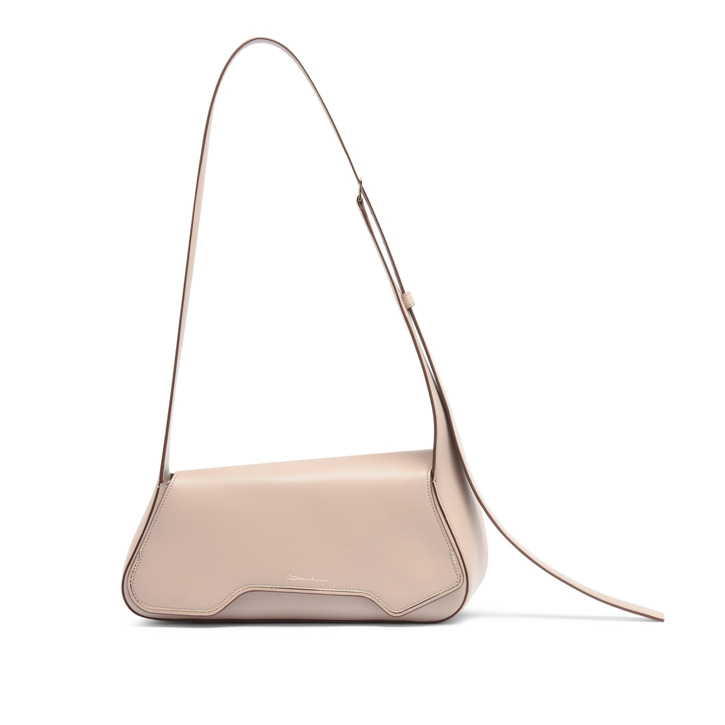 Slender lines and exquisite craftsmanship define ThePluto bag: an authentic expression of Santoni’s simple elegance and modern luxury. Its asymmetric silhouette boasts a geometric flap inspired by our iconic double-buckle shoe and an adjustable shoulder strap for endless styling possibilities. Crafted from the finest leather by the best Tuscan artisans, this accessory has been carefully shaped on a wooden mould using prestigious age-old techniques. Product details Product ID: DFBBA2536BAHVJOE44 - Women’s ThePluto bag - Crafted from leather - Color: beige - Inside pocket - Double-buckle-inspired flap closure - Adjustable shoulder strap - Dimensions: 31 cm x 15 cm x 9 cm - Printed Santoni logo - Made in Italy