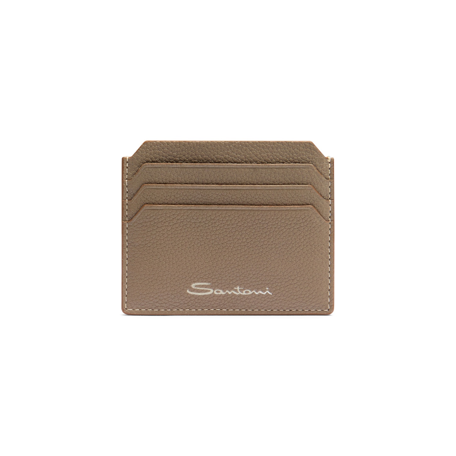 Fine tumbled leather and a sleek design for everyday functionality. This cardholder features a central pocket and three bevelled-edge slots on each side. Embellished with an embossed Santoni logo on the front for a signature touch. Product details Product ID: UFPPA2693FOASIWE81 - Crafted from tumbled leather - Color: beige - Dimensions: 10cm x 8,5cm x 0,5cm - Central pocket - 3 card slots per side - Embossed Santoni logo on the front - Made in Le Marche, Italy