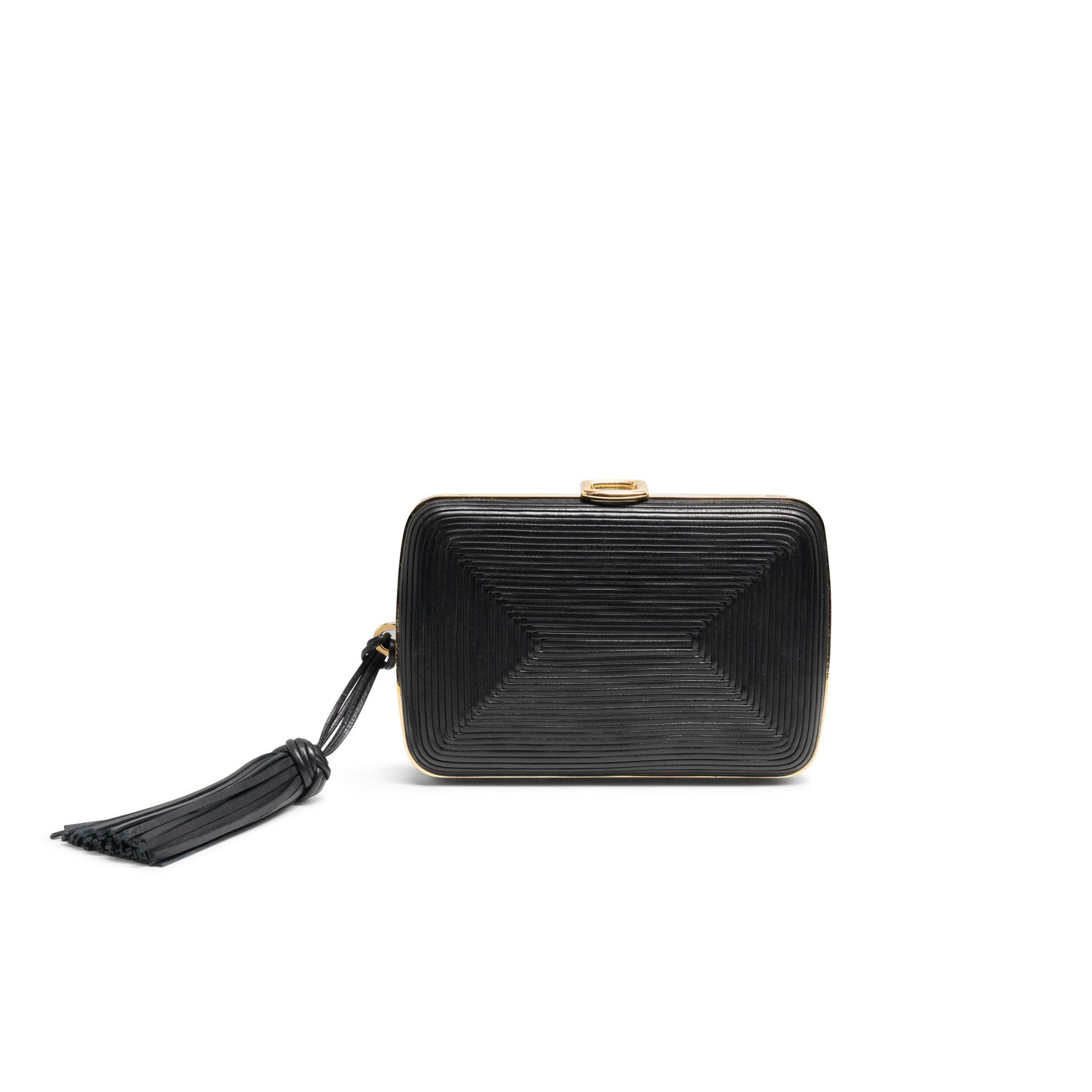 Thin nappa leather cords trace the elegant lines of this clutch for a luxuriously tactile feel. Bringing a glamorous touch to evening looks, it boasts a compact design that can be tucked neatly in the hand or worn across the body using the detachable chain strap. A tassel charm sways gracefully with every movement, while inside pockets keep your belongings safe and organised. Product details Product ID: DFBBA2808BAHSDBN01 - Crafted from nappa leather - Thin cord design - Color: black - Removable chain strap - Metal clip closure - Inside pockets - Removable tassel charm - Debossed Santoni logo on the inside - Made in Le Marche, Italy