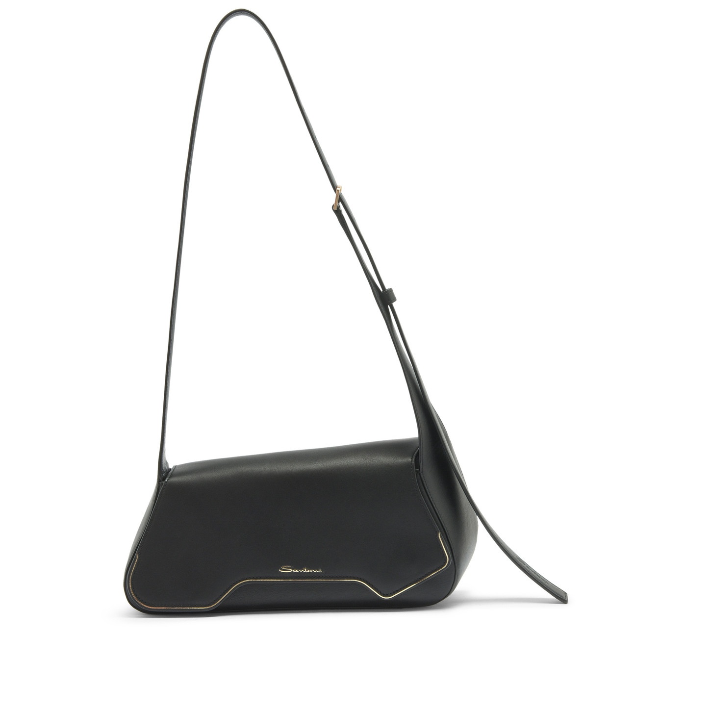 Slender lines and exquisite craftsmanship define ThePluto bag: an authentic expression of Santoni’s simple elegance and modern luxury. Its asymmetric silhouette boasts a geometric flap inspired by our iconic double-buckle shoe and an adjustable shoulder strap for endless styling possibilities. Crafted from the finest leather by the best Tuscan artisans, this accessory has been carefully shaped on a wooden mould using prestigious age-old techniques. Product details Product ID: DFBBA2536BAHVJON01 - Women’s ThePluto bag - Crafted from leather - Color: black - Inside pocket - Double-buckle-inspired flap closure - Adjustable shoulder strap - Dimensions: 31 cm x 15 cm x 9 cm - Printed Santoni logo - Made in Italy