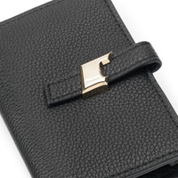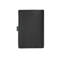 This card holder is devoted to the modern man seeking exceptional quality and Santoni style in the everyday. Its refined gusset construction features two inside compartments to keep cards and other small essentials organised. Crafted from soft tumbled leather with a metal accent on the strap that recalls the lines of our hallmark double buckle. Product details Product ID: DFPPA2628FOHDBCN01 - Crafted from tumbled leather - Color: black - Flap closure - Double-buckle-inspired detail - 2 fold-out compartments - Made in Le Marche, Italy