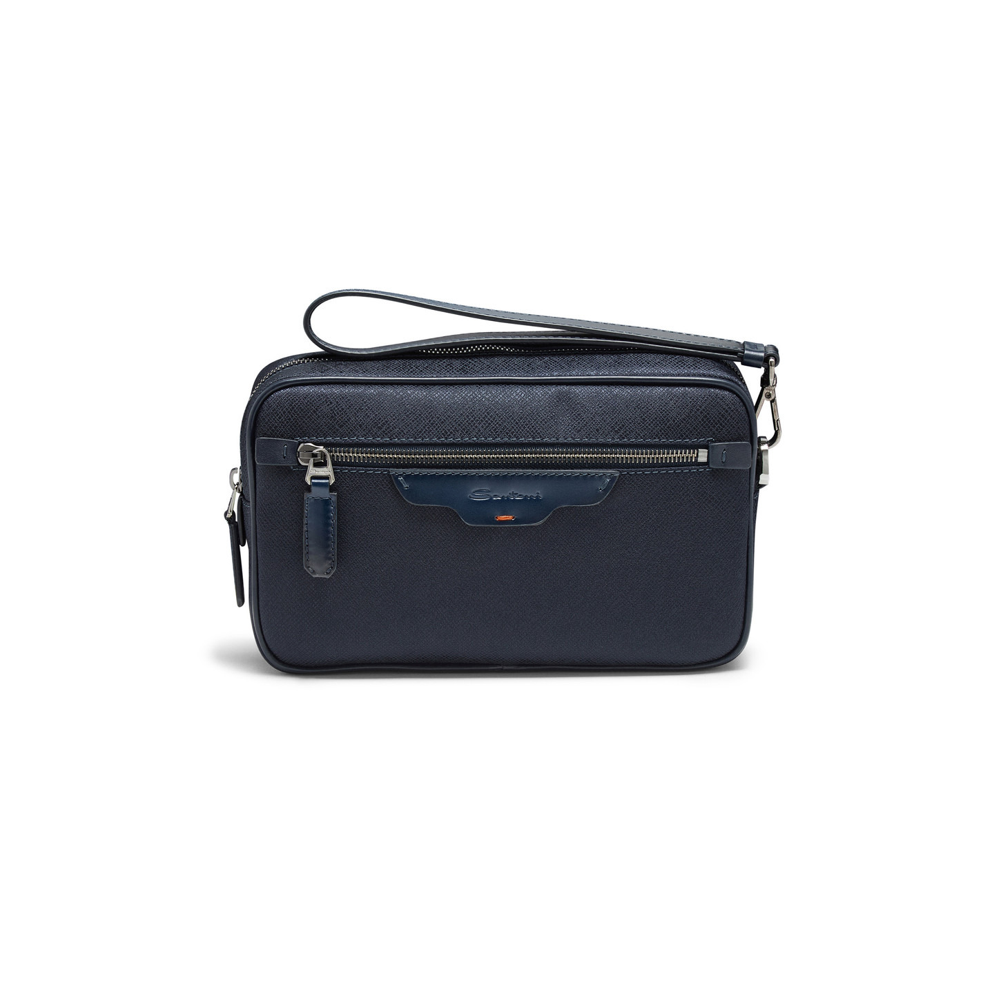 This pouch takes Santoni’s vision of functional elegance to unexplored horizons, crafted from nylon with a jacquard weave for a water-repellent finish and a texture that looks and feels just like boarded leather. Its compact design features a front pocket and a zip closure. Carry it in the palm of your hand or around your wrist using the detachable wrist strap. Product details Product ID: UFPPA2806FOGNDSU59 - Crafted from jacquard nylon with a boarded leather look - Leather details with “velatura” gradated finish - Color: blue - Detachable handle - Front zip pocket - Inside zip pocket - Zip closure - Debossed Santoni logo - Made in Le Marche, Italy