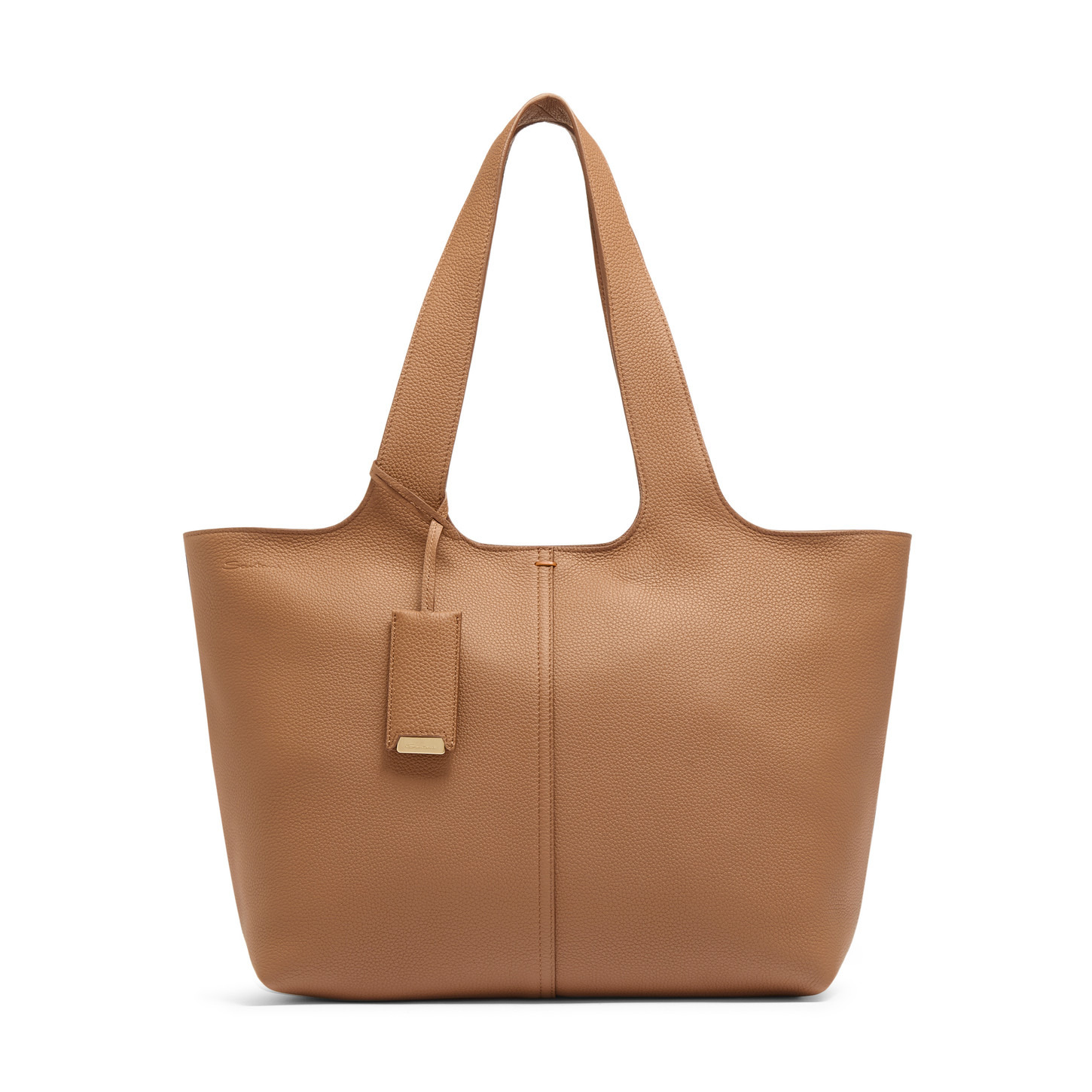 Combining oversized volumes with a soft, deconstructed design, this shopper is an essential for refined city looks. Its sophisticated tumbled leather design is elevated with a contrast base and delicate stitching: a flash of signature Santoni orange and an ode to our iconic style codes. Complete with a handy mirror charm and inside zip pocket for effortless ease and functionality. Product details Product ID: DIBBA2780BAAIDDC45 - Shopper style - Crafted from tumbled leather - Color: light brown - Top handles - Detachable charm with mirror - Inside zip pocket - Debossed Santoni logo - Dimensions: 41 cm x 36 cm x 20 cm - Made in Italy