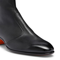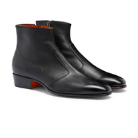 For everyday looks that strike the perfect balance between refined and edgy, look no further than this men's ankle boot. Its sleek silhouette is crafted from smooth leather, elevated with a contrast leather sole in Santoni's iconic orange tone. Styled with a tapered toe, slender ankle and inner side zip closure. Product details Product ID: MCAD18881BA2GMEMN01 - Men’s ankle boot - Crafted from leather - Color: black - Inner side zip - Leather sole with half rubber heel - Printed Santoni logo on the insole - Made in Italy