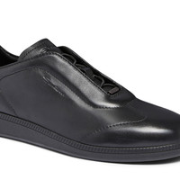 Casual sophistication meets sporty spirit to create this extraordinarily lightweight sneaker: the new essential in your everyday wardrobe. This style is crafted from ultra-touch leather, distinguished by an impeccably soft and supple fits-like-a-glove feel. Its sleek silhouette is fitted with elasticated laces for maximum comfort, supported by a rubber sole with a distinctive logo in signature Arancio Santoni slotted into the tread. Product details Product ID: MBPL22109NERTOILN01 - Crafted from ultra-touch leather - Treated with Santoni’s “velatura” color-grading technique - Color: black - Elasticated laces - Pull tab - Tonal rubber cupsole - Santoni lettering moulded into the tread - Made in Le Marche, Italy