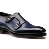 A Limited Edition style from our exclusive Meraviglia Collection, this double-buckle shoe is an ode to artisanal tradition, reinterpreted with mastery and modernity. Elevated with the rich nuances of Blu Meraviglia, its refined leather silhouette is crafted using our prestigious Uniqua technique: a process that sees the shoe seamlessly sculpted from a single piece of leather. A hand-sewn Goodyear welt construction ensures elevated resistance, while the Maison’s Santoni Culture symbol embellishes the insole and sole: an Emblem of Mastery that encapsulates the brand’s authentic essence and pays tribute to the artisans who shaped the legacy of Santoni style. Product details Product ID: MLLE19228DD4MWVEU59 - Limited Edition style - Handcrafted from leather - Treated with Santoni’s “velatura” color-grading technique - Color: Blu Meraviglia - Classic tapered silhouette - Double buckle - Hand-sewn Goodyear welt construction - Arancio Santoni orange leather sole and rubber half heel - Santoni Culture metal crest on the tread - Santoni Culture embossed crest on the insole - Comes with inner shoe tree - Made in Le Marche, Italy