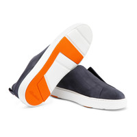 The lightweight elegance of a slip-on sneaker meets the luxurious materials and attention to detail that has set Santoni apart for decades. Crafted from luxuriously soft suede, this style features a pull tab on the heel so that it’s quick and easy to slip on and off. A flexible rubber cupsole completes the design, ensuring a comfortable stride from morning to night. Product details Product ID: MBCD21995BARTSEYU60 - Men's slip-on sneaker - Crafted from suede - Color: blue - Pull tab - Round toe - Rubber cupsole - Orange double-buckle detail on the tread - Made in Italy