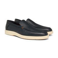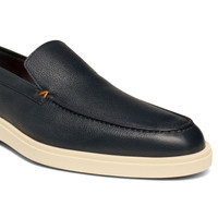 Santoni reinterprets the iconic lines of the loafer with a seamless fusion of casual style and lightweight wearability. Perfect for off-duty looks and informal occasions, this style is crafted from tumbled leather with a fine, luxuriously soft grain. Styled with a flexible rubber sole for ultimate morning-to-night comfort. Product details Product ID: MGDT17824TICSWLMU55 - Crafted from tumbled leather - Color: blue - Apron stitching - Classic silhouette with round toe - Unlined - Smooth rubber sole - Arancio Santoni orange tread - Printed Santoni logo on the insole - Made in Le Marche, Italy