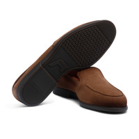 Santoni rewrites the lines of the iconic loafer with casual elegance and a lightweight construction you won’t want to take off. Crafted from suede with our signature “velatura” gradated finish, this style flaunts a wide-fit silhouette with timeless apron stitching. A rubber sole completes the design for an effortlessly comfortable stride from morning to night. Product details Product ID: MGAR18829DKTSRVRM62 - Men's loafer - Crafted from suede - Treated with Santoni’s “velatura” color-grading technique - Color: light brown - Stitched apron - Rubber sole - Printed Santoni logo on the insole - Made in Italy