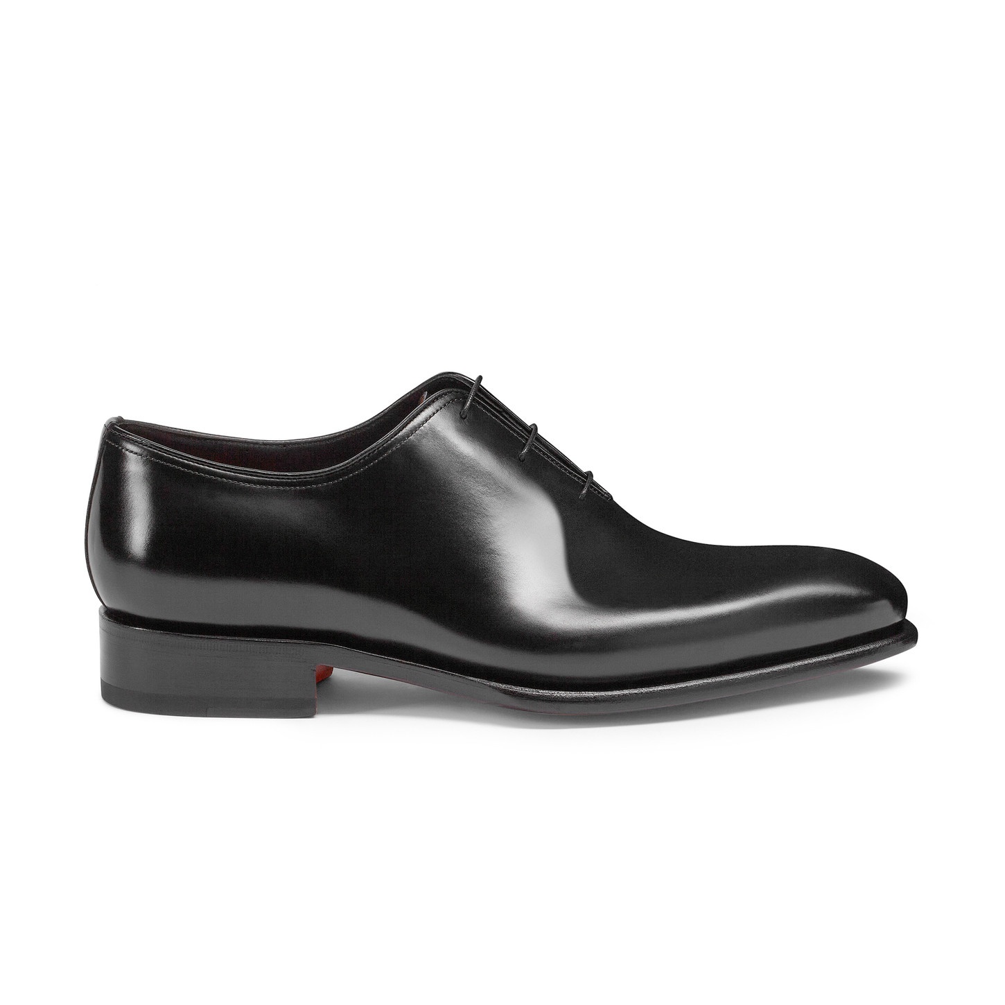 Timelessly elegant lines, artisanal techniques engrained in Italy’s rich cultural heritage and Santoni’s innovative touch. This Oxford shoe has been crafted entirely by hand, boasting a hand-polished leather upper with stitching only on the heel. Its elegant silhouette is crafted using an innovative Goodyear construction: a complex and extremely effective technique that ensures resistance whilst providing superior performance in terms of breathability and water-tightness. The sole can also be replaced, resulting in a timeless shoe that you can continue to wear for many years to come. Product details Product ID: MCCR16229MC1HVVDN01 - Men’s Oxford shoe - Crafted from hand-polished leather - Colour: black - Narrow-fit tapered silhouette - Goodyear construction - Can be resoled - Three-hole lace-up fastening - Leather lining - Leather sole with half rubber heel - Printed Santoni logo on the insole - Made in Italy