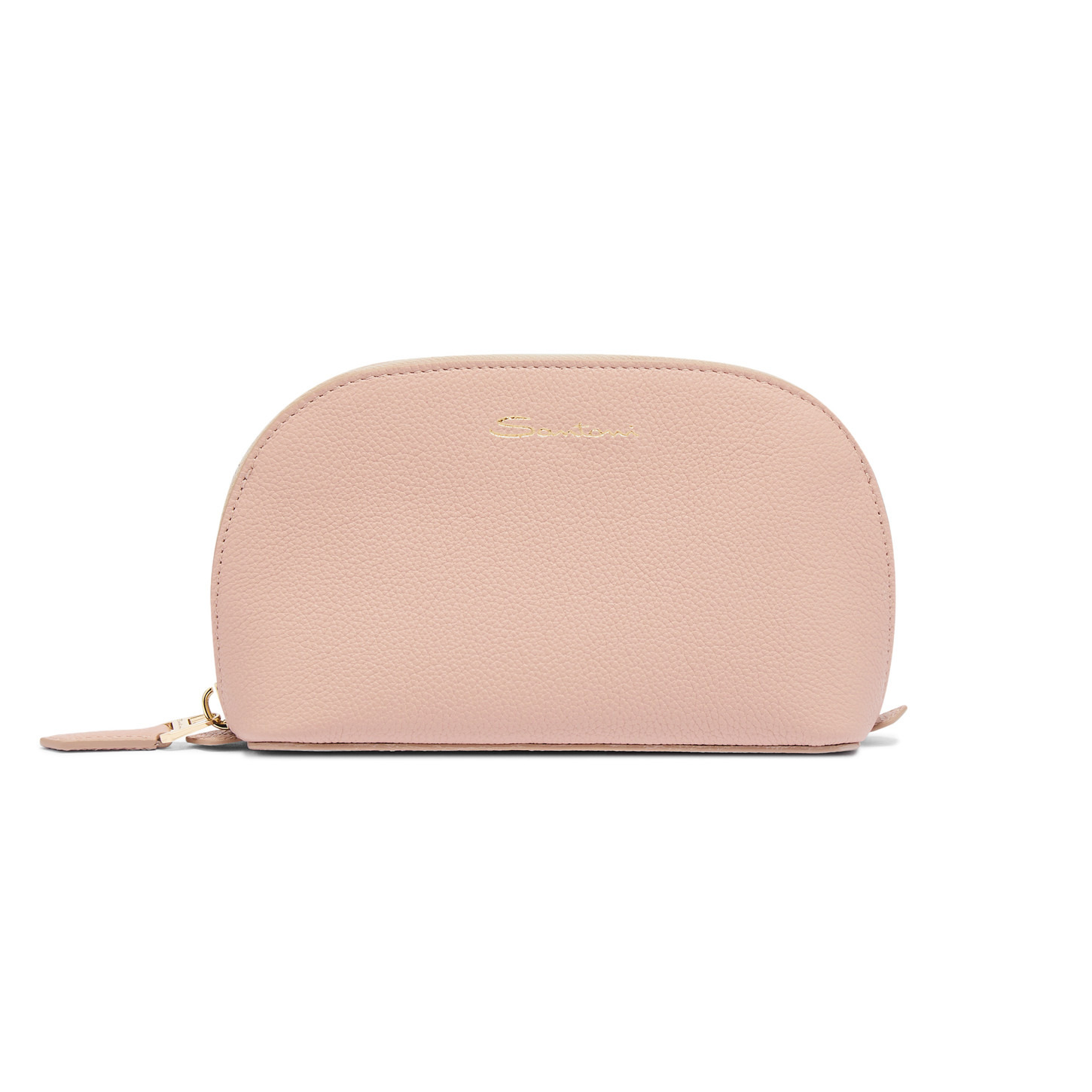 Compact proportions and artisanal charm define this Santoni pouch, enriching moments of beauty and travel with refined elegance. Crafted from tumbled leather, it’s equipped with a pocket on the inside for cards. Complete with a zip closure and debossed logo on the front. Product details Product ID: DFPPA2451FOHSIWP29 - Crafted from tumbled leather - Color: pink - Zip closure - Inside pocket with 2 card slots - Debossed Santoni logo on the front - Made in Le Marche, Italy