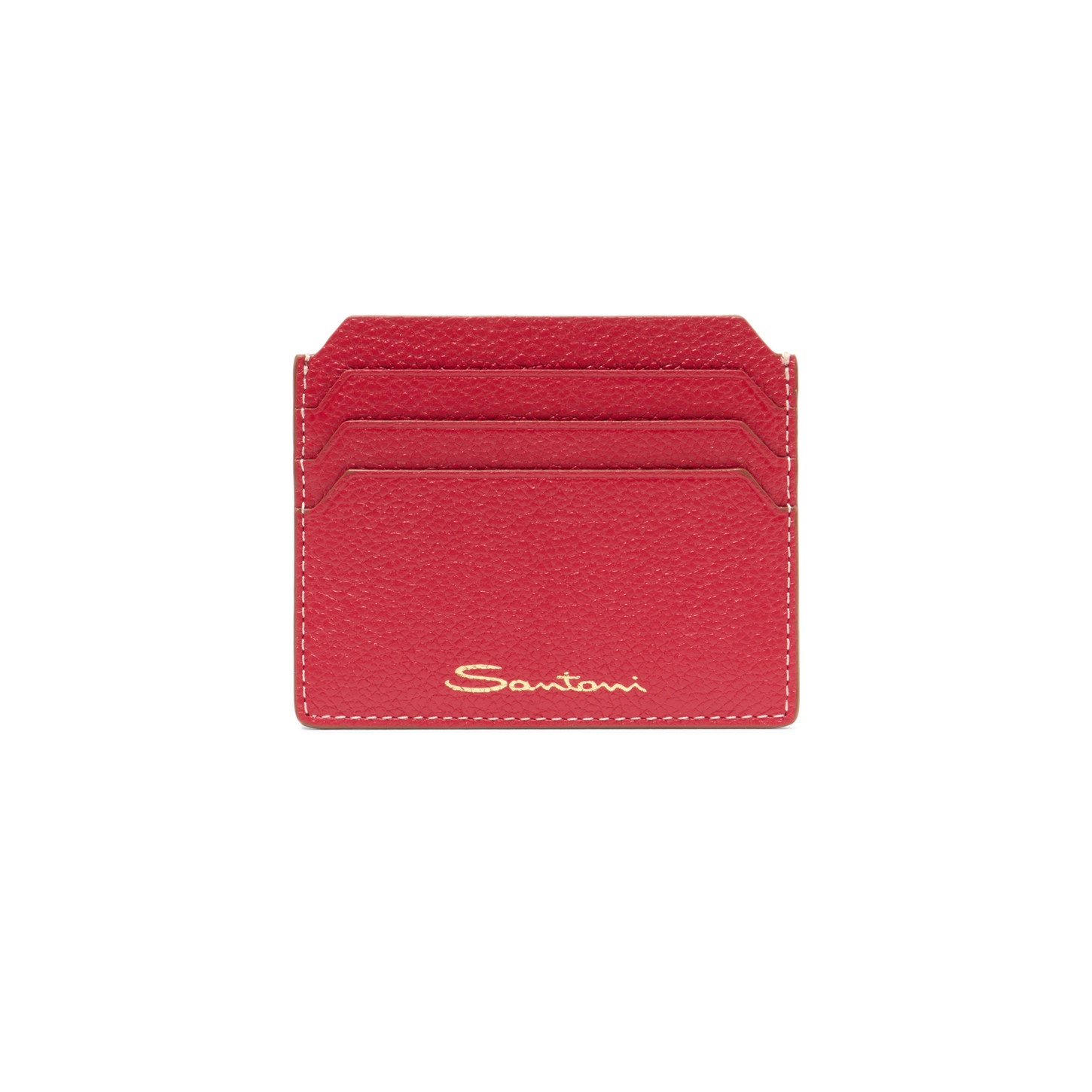 This Santoni cardholder strikes the perfect balance of elegant lines, exquisite craftsmanship and everyday functionality. Crafted from tumbled leather with an embossed logo on the front, it boasts a rectangular design with a handy central pocket and three slots on each side. Product details Product ID: DFPPA2693FOHTOGR50 - Crafted from tumbled leather - Color: red - Central pocket - 3 card slots per side - Embossed Santoni logo on the front - Dimensions: 10cm x 8,5cm x 0,5cm - Made in Le Marche, Italy