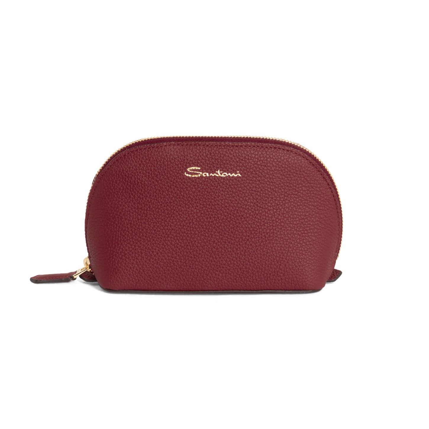 Compact proportions and artisanal charm define this Santoni pouch, enriching moments of beauty and travel with refined elegance. Crafted from tumbled leather, it’s equipped with a pocket on the inside for cards. Complete with a zip closure and debossed logo on the front. Product details Product ID: DFPPA2451FOHSIWR83 - Crafted from tumbled leather - Color: red - Zip closure - Inside pocket with 2 card slots - Debossed Santoni logo on the front - Made in Le Marche, Italy