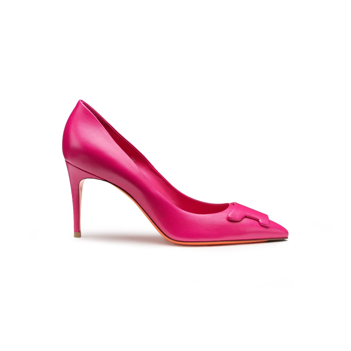Reimagining an icon of Santoni’s enduring legacy, this version of the Sibille pump combines refined craftsmanship with glamorous elegance. Crafted from supple leather, it features a tonal covered double-buckle detail for a streamlined look that pairs effortlessly with endless looks. Styled with a flattering tapered toe and slender stiletto heel. Product details Product ID: WDID71207HI2TSZAQ49 - Crafted from leather - Color: Lampone Pink - Classic silhouette with tapered toe - Tonal leather-covered double buckle detail - 3.3 inch stiletto heel - Leather sole - Printed Santoni logo on the insole - Made in Italy