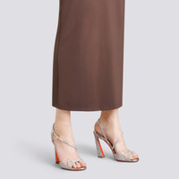 Add an exclusive touch to your party edit with this glistening Santoni sandal, bursting with charismatic charm. Crafted from rhinestone-studded suede, it envelopes the foot with a cross-over toe and elegant straps inspired by our iconic double-buckle shoe. Complete with an almond-shaped toe and geometric heel that widens at the base. Product details Product ID: WHCY71320HI2TIOHP15 - Women’s sandal - Crafted from suede - Color: pink - All-over rhinestones - Cross-over toe straps - Double-buckle-inspired strap closure - 10.5 cm heel that widens at the base - Leather sole - Printed Santoni logo on the insole - Made in Italy