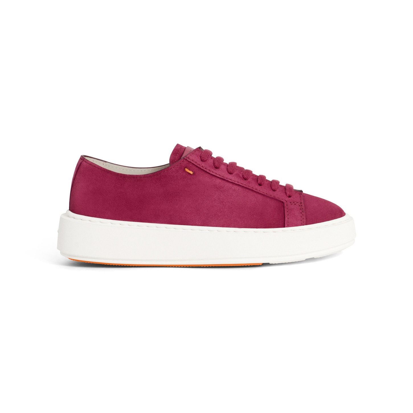 Crafted from soft, supple suede, this women’s sneaker combines artisanal finesse with modern practicality. Bringing a sophisticated touch to casual outfits, it features a leather logo patch on the tongue and a chunky rubber platform sole that elongates the leg. Complete with a bold detail on the tread in classic Arancio Santoni, recalling the lines of our iconic double buckle. Product details Product ID: WBCD61322BARCTOYR72 - Crafted from suede - Color: red - Round toe - Lace-up fastening - Unlined - Rubber cupsole - Arancio Santoni orange double-buckle detail on the tread - Made in Le Marche, Italy