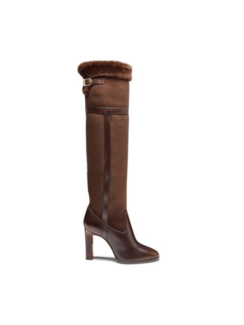 Women's gold leather and crystal mid-heel Meraviglia Collection sandal