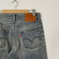 PLEASE READ DESCRIPTION FIRST BEFORE BUYING‼️ Vintage Levis 501 Distressed Denim Jeans CONDITION - Pre-owned. Original Item - Used condition (scale 8/10) - Refer picture TAG AND MATERIALS - Label : Levis - Size on tag : 30 ( from measurement it fit to size 31) MEASUREMENTS - Waist : 31 inches - Inseam : 27 inches -Lenght: 36 inches - Leg Opening : 17 inches - Front Rise : 10.5 inches - Thigh : 18 inches PAYMENT - Accept PAYPAL only SHIPPING - This item will be ship along with Tracking Number after received a completed payment. - Please leave your phone number for shipping requirement after made purchasing -Dont Worry About Custom Tax or Fees. I Usually Declare All Items Lower Than Original Price. -Please Leave Your Phone Number After Buying For Shipping Purpose And Please Make Sure Your Address Is Complete And Correct. -No Return / Refund After Paid. All Purchased Is Final. 📌SHIPPING METHOD📌 1) Standard Ship $18 ▶️ 2-3 Weeks 2) DHL Express Ship $25 ▶️5-7 Day Contact us if u have any inquiries ⚡DISCOUNTS FOR MULTIPLE ITEMS 🙏 THANKS FOR VISITED MY STORE 🙏 ATTENTION : Please pay close attention to measurements provided. Do not rely on tag size as pre-worn items may have been altered, stretched or shrunk & vintage sizes do not directly translate the modern sizes.The best way to ensure a correct fit is to compare our measurements with the measurements of a similar item that you know fits you well.Please enlarge the photos for clearer image #R1095 (G)