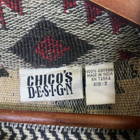 [DESCRIPTION] Please read the description first before buy my items‼️‼️ Vintage Chicos Design Navajo Style Jacket Size on tag : 3 Tag says 3,fits like XL All in good condition [MATERIAL] Cotton & Wool [MEASUREMENT] Measurement: armpit to armpit : 24.5 inches Back collar to bottom : 27.5 inches Sleeve length from under armpit to end of cuff : 17 inches [CONDITION] - All in good condition - No hole no rip no stain [PAYMENT & NOTICE] - We accept PayPal ONLY - No return/refund - All items will be post over shipping company counter within 1-3 working days after payment completed and please allow 1-3 weeks for shipping delivery to your destination. -We are trusted seller. Do message me if you have any questions to ask about this item. -Dont Worry About Custom Tax or Fees. I Usually Declare All Items Lower Than Original Price. -Please Leave Your Phone Number After Buying For Shipping Purpose And Please Make Sure Your Address Is Complete And Correct. -No Return / Refund After Paid. All Purchased Is Final. ALL ITEMS ARE SHIPPED VIA REGISTERED AIR MAIL MALAYSIAN POST SIGN FOR WITH TRACKING NUMBER. #R0353