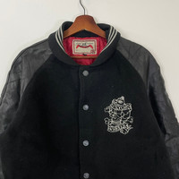[DESCRIPTION] Please read the description first before buy my items‼️‼️ Vintage Psycho Wheels Embroidery Logo Varsity Jacket Size on tag : S Tag says S,fits like XL (please refer the actual measurements given and compare it with best fitting clothes,by using the size on tag is not always accurate) All in good condition [MATERIAL] Wool Acrylic Cow Leather [MEASUREMENT] Measurement: armpit to armpit : 24 inches Back collar to bottom : 26.5 inches Sleeve length from under armpit to end of cuff : 18.5 inches [CONDITION] - All in good condition - No hole no rip no stain [PAYMENT & NOTICE] - We accept PayPal ONLY - No return/refund - All items will be post over shipping company counter within 1-3 working days after payment completed and please allow 1-3 weeks for shipping delivery to your destination. -We are trusted seller. Do message me if you have any questions to ask about this item. -Dont Worry About Custom Tax or Fees. I Usually Declare All Items Lower Than Original Price. -Please Leave Your Phone Number After Buying For Shipping Purpose And Please Make Sure Your Address Is Complete And Correct. -No Return / Refund After Paid. All Purchased Is Final. ALL ITEMS ARE SHIPPED VIA REGISTERED AIR MAIL MALAYSIAN POST SIGN FOR WITH TRACKING NUMBER. #R0609