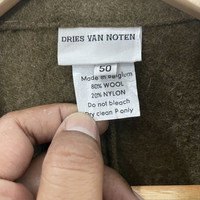 [DESCRIPTION] Please read the description first before buy my items‼️‼️ Dries Van Noten Vintage Jacket Size on tag : 50 Tag says 50,fits like M (please refer the actual measurements given and compare it with best fitting clothes,by using the size on tag is not always accurate) All in good condition [MATERIAL] Wool 80% Nylon 20% [MEASUREMENT] Measurement: armpit to armpit : 21 inches Back collar to bottom : 30 inches Sleeve length from under armpit to end of cuff : 19 inches [CONDITION] - All in good condition - Kindly please refer photo [PAYMENT & NOTICE] - No return/refund - All items will be post over shipping company counter within 1-3 working days after payment completed and please allow 1-4 weeks for shipping delivery to your destination. -Add 30 USD for speedy delivery via DHL Express Service. It will take 4 - 7 working days to deliver -We are trusted seller. Do message me if you have any questions to ask about this item. -Dont Worry About Custom Tax or Fees. I Usually Declare All Items Lower Than Original Price. -Please Leave Your Phone Number After Buying For Shipping Purpose And Please Make Sure Your Address Is Complete And Correct. -No Return / Refund After Paid. All Purchased Is Final. ALL ITEMS ARE SHIPPED VIA REGISTERED AIR MAIL MALAYSIAN POST SIGN FOR WITH TRACKING NUMBER. #R2459