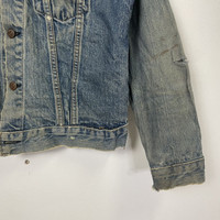 PLEASE READ DESCRIPTION FIRST BEFORE BUYING‼️ Vintage 90s Levis Destressed Denim Jacket ( Please refer measurement below ) •MEASUREMENT Armpit to armpit : 20 inches Length from top to buttom : 24 inches Sleeve length : 16 inches •CONDITION All in good condition , kindly please refer photos •MATERIAL Cotton •SHIPPING 💥 We ship to worldwide with a tracking number. - All item will ship from Malaysia and will be ship by post Malaysia ( Flexipack ) - All item will be shipped out within 2-3 business days ( handling time ) after payment received - Ussually it takes about 12 - 24 business days for delivery for all international order 💥Add 20 USD for speedy delivery via DHL Express Service. It will take 4 - 7 working days to deliver -Dont Worry About Custom Tax or Fees. I Usually Declare All Items Lower Than Original Price. -Please Leave Your Phone Number After Buying For Shipping Purpose And Please Make Sure Your Address Is Complete And Correct. -No Return / Refund After Paid. All Purchased Is Final. ‼️ATTENTION‼️ 💥Do not rely on tag size as pre-worn item may have been altered,stretched or shrunk & vintage sizes do not directly translate the modern sizes 💥Bundle Buy to get special price THANK YOU #R0256