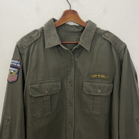 [DESCRIPTION] Please read the description first before buy my items‼️‼️ Vintage Dragon Fly Military Jacket (please refer the actual measurements given and compare it with best fitting clothes,by using the size on tag is not always accurate) All in good condition [MATERIAL] Cotton [MEASUREMENT] Measurement: armpit to armpit : 25 inches Back collar to bottom : 29.5 inches Sleeve length from under armpit to end of cuff : 17 inches [CONDITION] - All in good condition - Kindly please refer photo [PAYMENT & NOTICE] - No return/refund - All items will be post over shipping company counter within 1-3 working days after payment completed and please allow 1-4 weeks for shipping delivery to your destination. -Add 30 USD for speedy delivery via DHL Express Service. It will take 4 - 7 working days to deliver -We are trusted seller. Do message me if you have any questions to ask about this item. -Dont Worry About Custom Tax or Fees. I Usually Declare All Items Lower Than Original Price. -Please Leave Your Phone Number After Buying For Shipping Purpose And Please Make Sure Your Address Is Complete And Correct. -No Return / Refund After Paid. All Purchased Is Final. ALL ITEMS ARE SHIPPED VIA REGISTERED AIR MAIL MALAYSIAN POST SIGN FOR WITH TRACKING NUMBER. #R2490