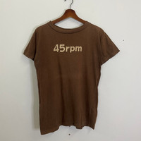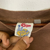 [DESCRIPTION] Please read the description first before buy my items‼️‼️ Vintage 45rpm Big Logo Short Sleeve Tee (please refer the actual measurements given and compare it with best fitting clothes,by using the size on tag is not always accurate) All in good condition [MATERIAL] Cotton [MEASUREMENT] Measurement: armpit to armpit : 18.5 inches Back collar to bottom : 26 inches [CONDITION] - All in good condition - No hole no rip no stain [PAYMENT & NOTICE] - We accept PayPal ONLY - No return/refund - All items will be post over shipping company counter within 1-3 working days after payment completed and please allow 1-3 weeks for shipping delivery to your destination. -Add 20 USD for speedy delivery via DHL Express Service. It will take 4 - 7 working days to deliver -We are trusted seller. Do message me if you have any questions to ask about this item. -Dont Worry About Custom Tax or Fees. I Usually Declare All Items Lower Than Original Price. -Please Leave Your Phone Number After Buying For Shipping Purpose And Please Make Sure Your Address Is Complete And Correct. -No Return / Refund After Paid. All Purchased Is Final. ALL ITEMS ARE SHIPPED VIA REGISTERED AIR MAIL MALAYSIAN POST SIGN FOR WITH TRACKING NUMBER. #R1613