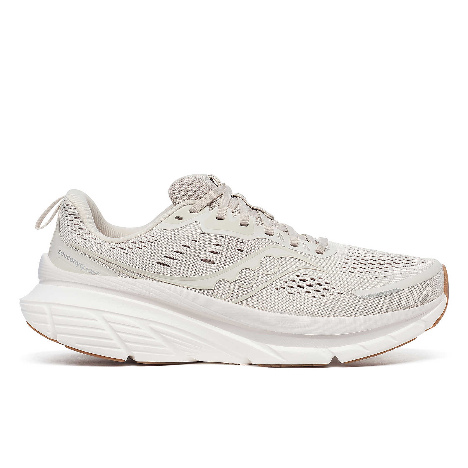 Run with Confidence. The Guide 18 elevates comfort to new heights with enhanced PWRRUN cushioning, providing more protection than ever before. Our innovative CenterPath™ technology ensures you stay secure and confident with every step. This daily running shoe also features a redesigned upper with breathable mesh for improved airflow and a padded heel collar for a snug fit. Go further with the Guide 18. Made for Daily Movement SUPPORT: Neutral - Max Cushion CUSHIONING: PWRRUN WEIGHT PER SHOE: Men: 9.6oz (272g) Women: 8.6oz (245g) OFFSET: 6mm (35/29mm) Breathable Upper Everyday Wear CenterPath™ Technology Highlights - A broad base platform underfoot with higher sidewalls cradles the foot so you can roll smoothly with peak protection mile after mile. - PWRRUN cushioning and PWRRUN+ Sockliner give you maximum comfort and a soft feel from the moment you step in. - Updated heel collar foam offers a locked-in feel and new engineered breathable mesh allows for a fresh feel from start to finish. FEATURES & BENEFITS - CENTERPATH TECHNOLOGY – A broad base platform underfoot with higher sidewalls cradles the foot so you can roll smoothly with better protection mile after mile - MAX COMFORT – PWRRUN cushioning and PWRRUN+ Sockliner give you maximum comfort and a soft feel from the moment you step in - FRESH + SECURE FEEL – The reimagined upper with breathable mesh and padded heel collar ensures a fresh, locked-in feel from start to finish