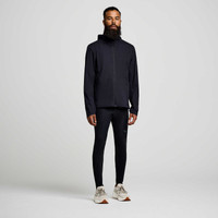 Outrun Mother Nature. Cut through the snow and rain in the Hurricane Waterproof Jacket. Designed to help you stay dry and warm in cold conditions, this capsule uses materials designed for weather-ready comfort. FEATURES & BENEFITS - Full seam sealed waterproof protection - Hood adjustability for peripheral vision - Internal rear panel adjustability for fit - Vented back detail for breathability in high output pursuits - Waterproof centerfront zipper - Zippered hand pockets - Reflective logos and trim at back vent - Primary Material: 76g/m2 100% Recycled Polyester with non-PFC Durable Water Repellant (DWR) - Model is wearing a size medium - Model is wearing a size medium