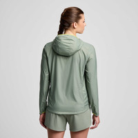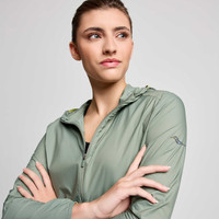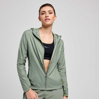 From the joy of the descent to the sweat that goes into earning it. FEATURES & BENEFITS - Wind- and water-resistant - Debris resistant materials - Packable-protection-ready - Best for: Daily trail runs, hikes - Active fit - Primary material: 48 g/m2 50% Nylon (Recycled)/ 50% Nylon - 3 panel hood adjustability for peripheral vision - Hook at exterior base of hood allows runner to roll hood and wrap with locker loop bungee - Full draft flap protects chin and blocks out wind from entering at the zipper - Bungee and cordlock at hem for adjustable fit - Zippered hand pockets - Jacket packs into wearer's right hand pocket; Includes hook to attach to bag or drawcord - Reflective logos - Model is wearing a size small