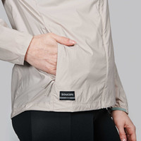 From the joy of the descent to the sweat that goes into earning it. FEATURES & BENEFITS - Wind- and water-resistant - Debris resistant materials - Packable-protection-ready - Best for: Daily trail runs, hikes - Active fit - Primary material: 48 g/m2 50% Nylon (Recycled)/ 50% Nylon - 3 panel hood adjustability for peripheral vision - Hook at exterior base of hood allows runner to roll hood and wrap with locker loop bungee - Full draft flap protects chin and blocks out wind from entering at the zipper - Bungee and cordlock at hem for adjustable fit - Zippered hand pockets - Jacket packs into wearer's right hand pocket; Includes hook to attach to bag or drawcord - Reflective logos - Model is wearing a size small