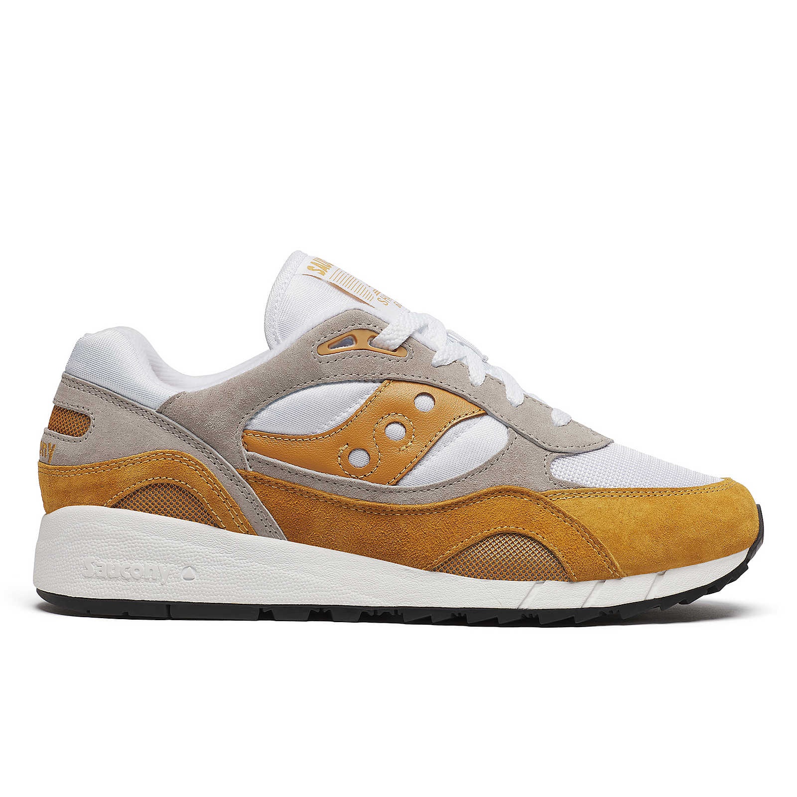 Summoning 1991’s best high-mileage running shoes, these classics support and flex perfectly with the killer cushioning you know and expect from Saucony. Indulge yourself with suede and leather, which give this retro athletic shoe their classic look. Throw on your Shadow 6000 and break a sweat in the same balanced running fashion sneakers you’ve rocked since back in the day. Featuring a premium sock liner, an ionic cushioning system, an EVA midsole and triangular lugs, they’re a blast from the past and they’re ready for all the future greatness to come. FEATURES & BENEFITS - Premium sock liner - Ionic cushioning system - Polyurethane - Triangular lugs