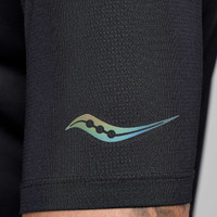 Redesigned for incredible breathability and optimal stretch. FEATURES & BENEFITS - Dialed in fit and function - Best-in-class sweat-wicking - Now with superior 4-way stretch material - Flat lock seams - Made of 92% Recycled Polyester - Best for: Daily runs or workouts - Active fit - Primary material: 140 g/m2 92% Polyester (Recycled) / 8% Elastane - Shaped hem is ideal for layering whether tucked or untucked - Small internal locker loop for hanging to dry - Reflective logos and Saucony patch logo - Model is wearing a size medium