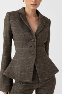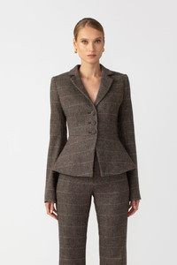 Aries Blazer is a tailored jacket made of fine wool that is cinched at the waist for a flattering silhouette. Featuring pointed lapels with flared sleeves. Complete this power look with the matching Aries Pant. SIZE & FIT • Fits true to size, take your normal size • Designed for a slim fit • Fully lined • Stretch fabric • Ideal for work • Cinched waist for flattering fit • Slight flared sleeves • Length (shoulder to hem): size 00 to size 0 - 22.4", size 2 - 23.2", size 4 - 23.6", size 6 - 24.0", size 8 to size 14 - 24.4" • Model's measurements: height 5'9" bust 32" waist 25" hips 36" • Model is wearing size 2 MATERIAL & CARE • Shell - 60% Polyester, 40% Wool • Lining - 97% Polyester, 3% Spandex • Garment Care: Hand wash separately or dry clean
