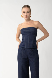 The Brooklyn Top is a strapless denim corset with full boning for sculpted support. Featuring hand-tied pipa knots along the waistline, it’s an elevated wardrobe essential. SIZE & FIT • Fits true to size, take your normal size • Fully lined • Length (bust to hem): size 00 - 16.5", size 0 - 17.1", size 2 - 17.7", size 4 - 18.3", size 6 - 18.9", size 8 - 19.5", size 10 - 20.3", size 12 - 21.1", size 14 - 22.0" • Model's measurements: height 5'9" bust 32.5" waist 23.5" hips 35" • Model is wearing size 2 MATERIAL & CARE • Shell - 100% Cotton • Lining - 100% Polyester • Garment Care: Hand wash separately or dry clean