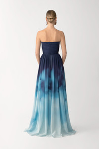The Camille Dress is a strapless chiffon maxi featuring a pleated bodice and a beautiful original print. Designed with a tailored hem length, it moves effortlessly with you—perfect for outdoor occasions. SIZE & FIT • Fits true to size, take your normal size • Fully lined • Length (bust to hem): size 00 - 52.8", size 0 - 54.7", size 2 to size 14 - 56.7" • Model's measurements: height 5'9" bust 32.5" waist 23.5" hips 35" • Model is wearing size 2 MATERIAL & CARE • Shell - 100% Polyester • Lining - 100% Polyester • Garment Care: Hand wash separately or dry clean