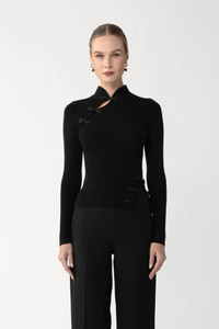 The Dakota Top is crafted from soft knit for a close, comfortable fit, featuring long sleeves, a mandarin collar, and signature hand-tied pipa knot detailing. An elevated staple with timeless appeal. SIZE & FIT • Fits true to size, take your normal size • Unlined • Length (collar to hem): size XS - 20.1", size S - 20.5", size M - 21.2", size L - 22" • Model's measurements: height 5'9" bust 32.5" waist 23.5" hips 35" • Model is wearing size 2 MATERIAL & CARE • Shell - 100% Viscose • Garment Care: Hand wash separately or dry clean