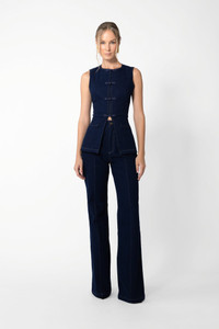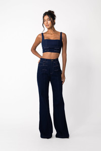 Tailored high-waisted, wide-leg denim pant with slight stretch featuring signature pipa knot detail SIZE & FIT • Fits true to size, take your normal size • Unlined • Length (waist to hem): size 00 to size 0 - 44.1", size 2 to size 14 - 47.2" • Model's measurements: height 5'9" bust 32.5" waist 23.5" hips 35" • Model is wearing size 2 MATERIAL & CARE • Shell - 100% Cotton • Unlined • Garment Care: Hand wash separately or dry clean