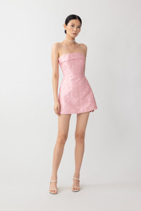 Strapless jacquard mini dress with fully-boned corset and a slight A-line skirt SIZE & FIT • Fits true to size, take your normal size • Designed for a closed fit • Fully lined • Non-stretch fabric • Length (bust to hem): size 00 to size 0 - 22.8", size 2 - 23.2", size 4 - 23.6", size 6 - 24.0", size 8 to size 14 - 24.4" • Model's measurements: height 5'9" bust 32" waist 25" hips 35" • Model is wearing size 2 MATERIAL & CARE • Shell - 100% Polyester • Lining - 97% Polyester, 3% Spandex • Garment Care: Hand wash separately or dry clean