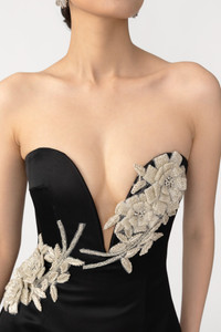 The Lena Dress is a satin mini A-line silhouette with a structured bodice featuring a sweetheart neckline and an elaborately embroidered floral applique to create a romantic and elevated party look. MATERIAL & CARE • Shell - 100% Polyester • Lining - 97% Polyester, 3% Spandex • Garment Care: Hand wash separately or dry clean