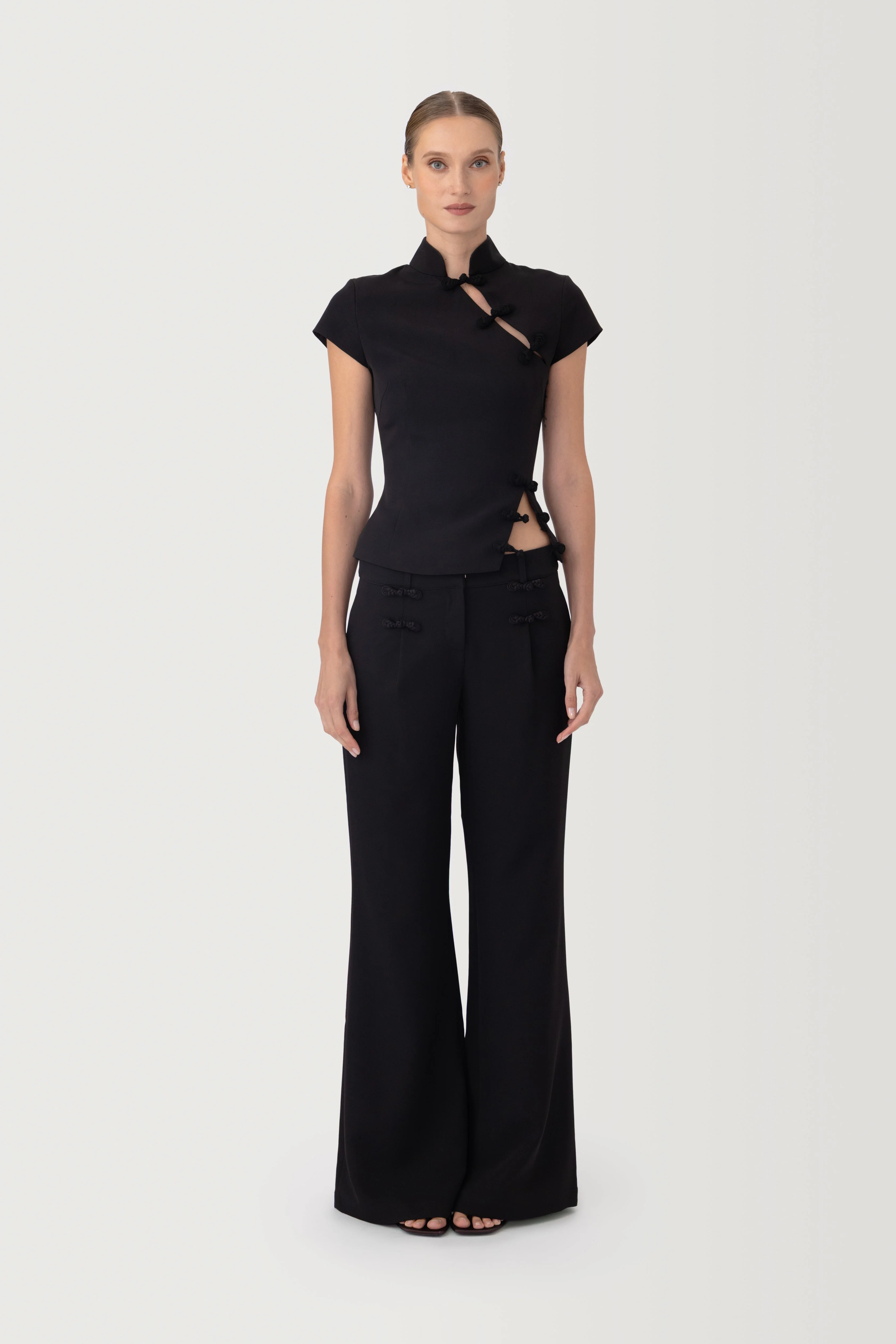 The Soren pant is a mid-rise wide-leg design tailored from crepe fabric. With a comfortable waistband and flattering fit, it features hand-tied pipa knot details for distinctive style and seam pockets for practicality. This pant pairs perfectly with the Iris crepe top for elevated everyday attire. SIZE & FIT • Fits true to size, take your normal size • Fully Lined • Non-stretch fabric • Model's measurements: height 5'9" bust 32 waist 25 hips 36 • Model is wearing size 2 MATERIAL & CARE • Shell - 100% Polyester • Lining - 97% Polyester, 3% Spandex • Garment Care: Hand wash separately or dry clean
