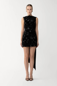 The Winter Dress is crafted from plush velvet embroidered with tonal sequin florals. Featuring a backless cut and fluid ties, it brings movement and charm to cold-weather dressing. SIZE & FIT • Fits true to size, take your normal size • Fully lined • Length (collar to hem): size 00 to size 0 - 30.3", size 2 - 31.1", size 4 - 31.5", size 6 - 31.9", size 8 - 32.3", size 10 to size 14 - 32.7" • Model's measurements: height 5'9" bust 32.5" waist 23.5" hips 35" • Model is wearing size 2 MATERIAL & CARE • Shell - 100% Silk • Lining - 97% Polyester, 3% Spandex • Garment Care: Hand wash separately or dry clean