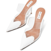 White patent leather mules from Alaia. The Coeur mule pumps feature a flattering heart front cut and a sharply pointed toe, mounted on a new shaped slim stiletto heel measuring 90mm. - Leather sole - True to size - Made in Italy Product Code: AA3M053CK150010