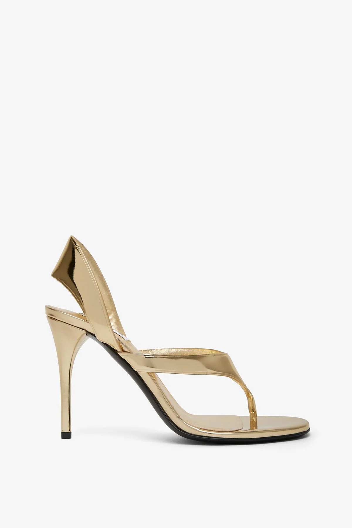 Silver laminated leather sandals from Alaia. The Infradito 90 gold leather sandals is made of a mirror effect laminated calfskin leather, feature a slingback strap and a stiletto heel measuring 90mm. - Leather sole - True to size - Made in Italy Product Code: AA3S122CK298240
