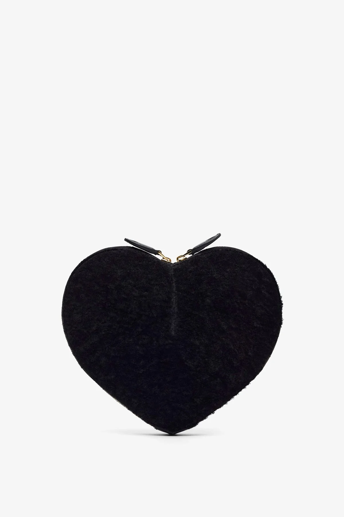 Black shearling crossbody bag from Alaia. The Le Coeur bag is made in velvety effect shaved shearling in the shape of a heart, featuring a zipped top, hanging from an adjustable shoulder strap. - Measurements: L21 x H17 x W5 cm - Made in Italy Product Code: AA1P003I156999