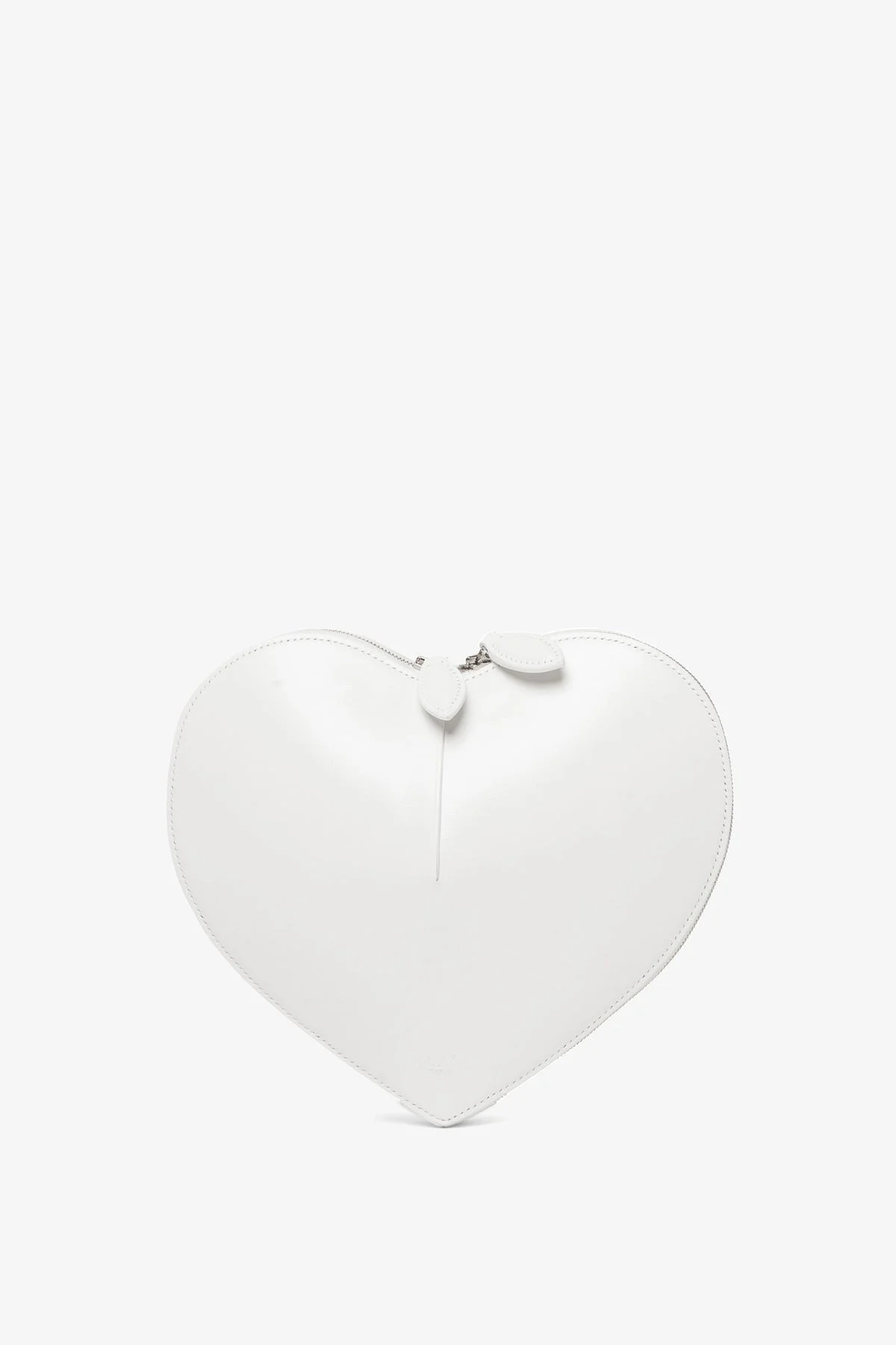 White leather crossbody bag from Alaia. The Le Coeur bag has the shape of a heart, features a zipped top and hangs from an adjustable shoulder strap. - Measurements: L7 x H18 x W21 cm - Made in Italy Product Code: AA1P003C0Y75