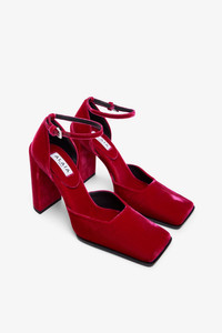 Square 90 fuchsia velvet pumps